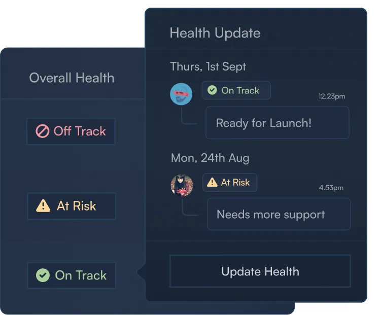 Map out projects across teams, communicate health progress, and align target dates.