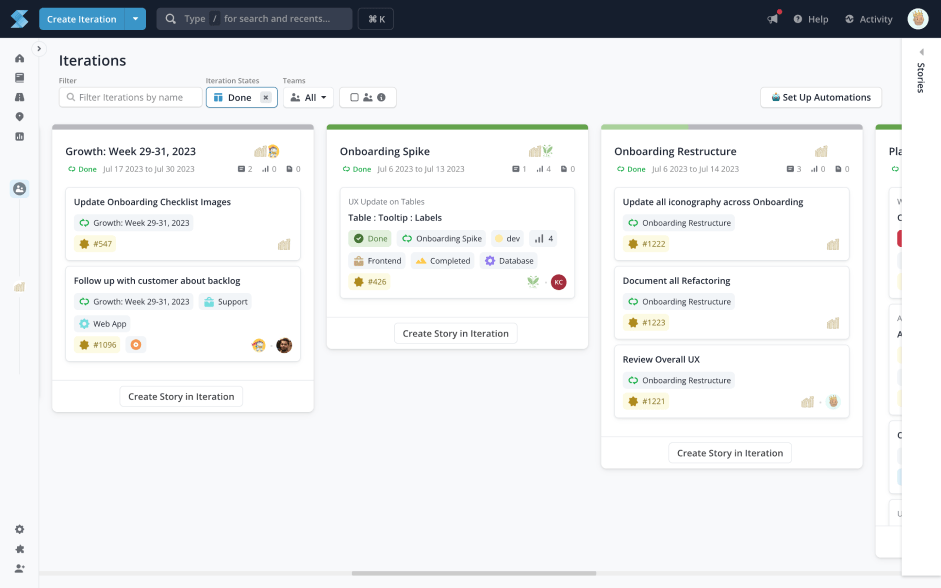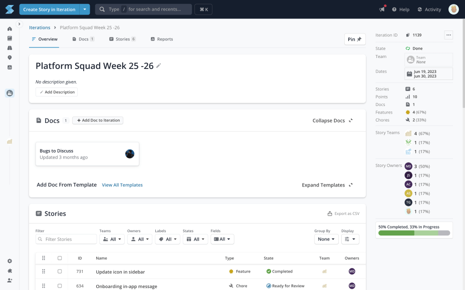Quickly prioritize and keep track of the work your team needs to be focused on week-to-week with Iterations.
